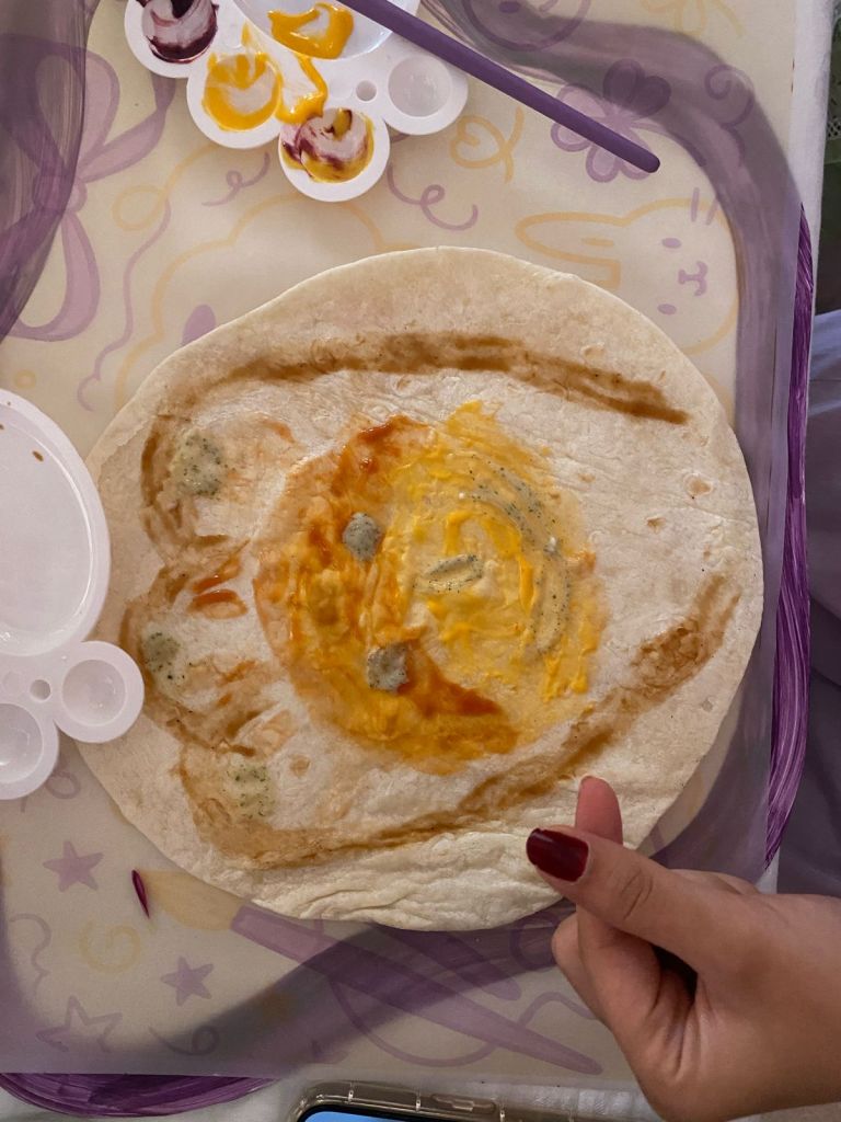 Guests were invited to choose a tortilla, serving as their edible “canvas”—and use paintbrushes to decorate it with the sauces, guided by creative prompts. Once they finished painting, they could add toppings like chicken and pepperoni, roll it into a wrap, and enjoy their creation alongside a refreshing glass of lemonade.