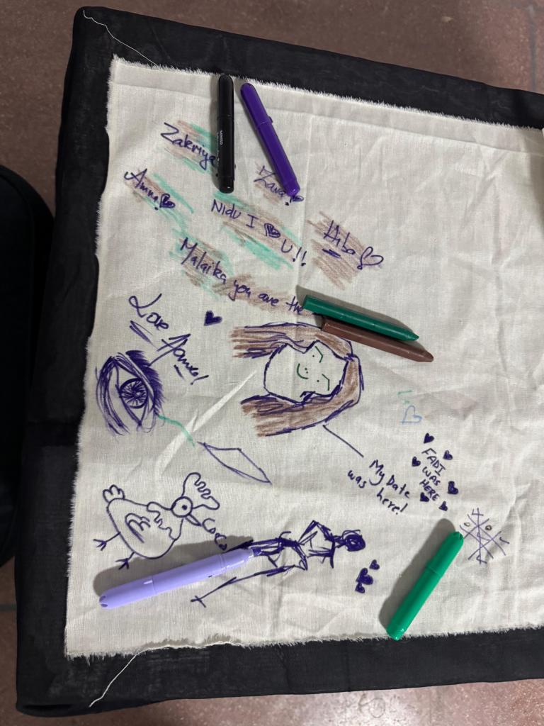 The project came to life thanks to a team of passionate and creative individuals. The Design Team, led by Tayyaba Amir and Meerab Bhandara, developed the overall concept and structure. The Decor Team—Hiba, Zikriya, Nida, and Zara—created the inviting ambiance that makes the space feel warm and welcoming. The Chef Team, including Amna Saleem, Malaika Ali, and Eesha Qureshi, prepared the sandwiches with care, ensuring that the food matched the thoughtful spirit of the event. Execution was a collaborative effort, with every team member playing a vital role.