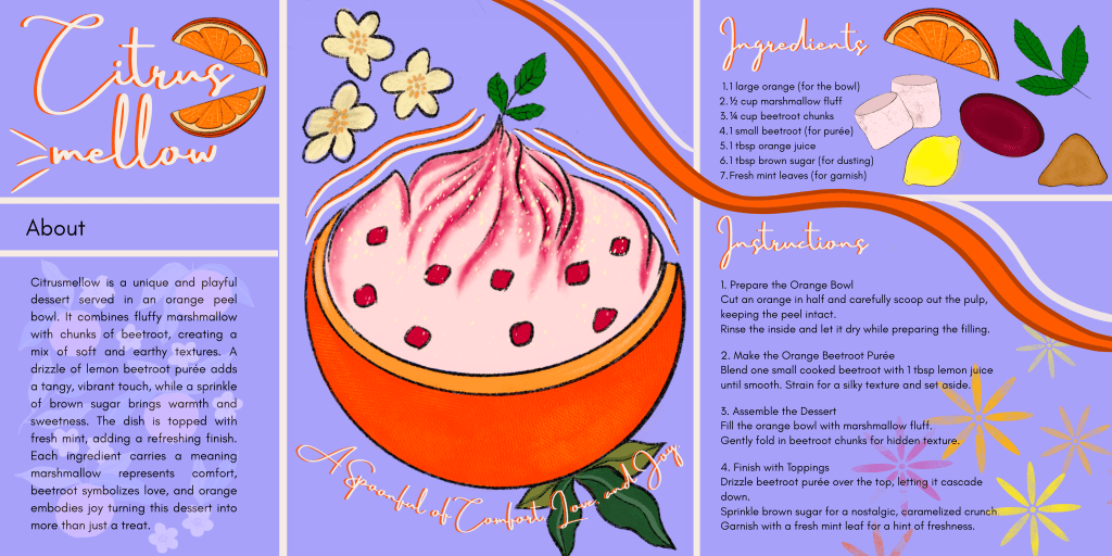 In this assignment, students engaged in an introspective exercise that used food as a medium to tell personal stories. The task required them to recall a significant memory, such as a moment from childhood, a cultural ritual, a family tradition, or an experience of personal change—and translate it into a recipe. This was not just about cooking; it was about using the semiotics of food to explore and express emotions, histories, and identities.