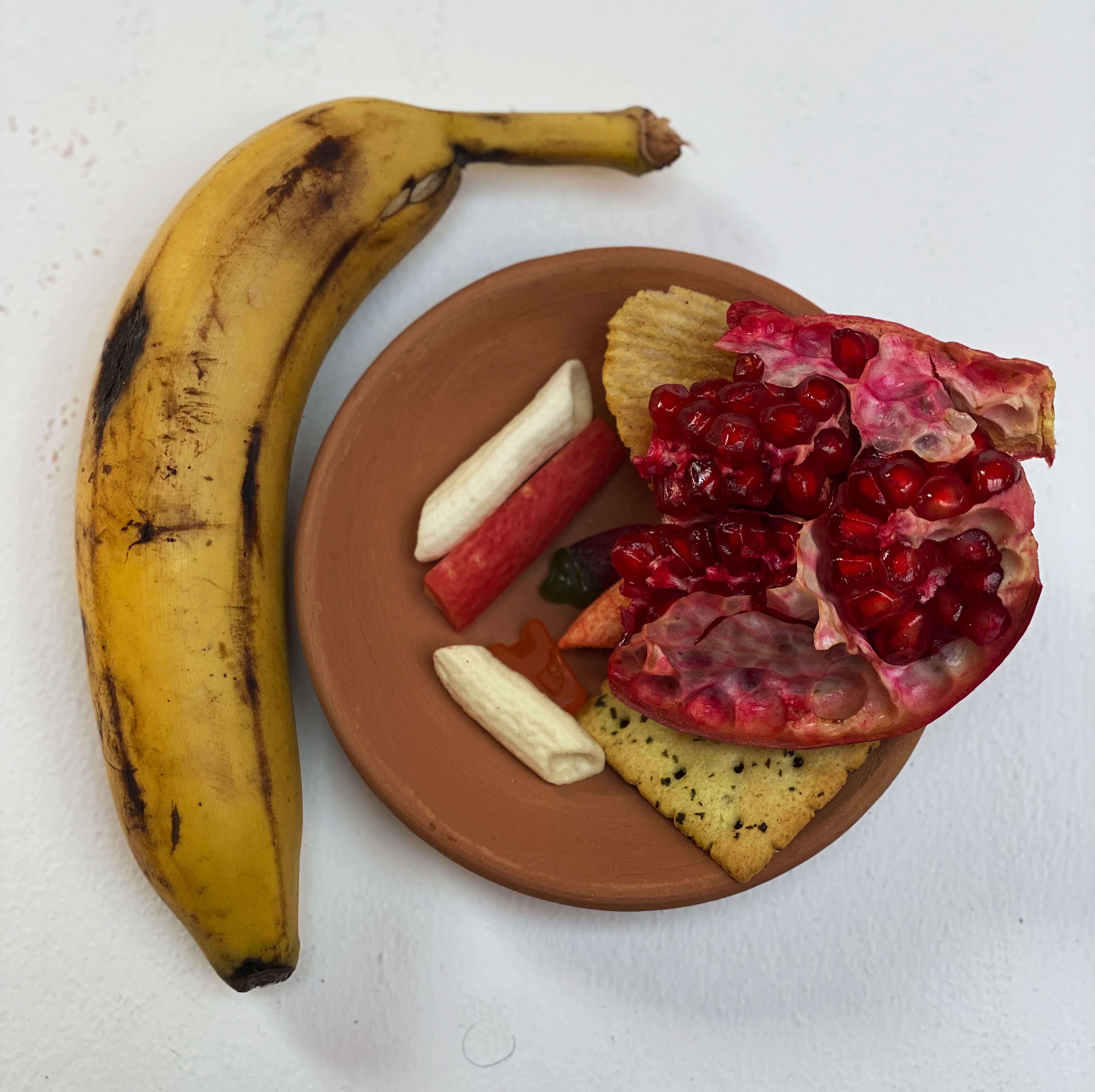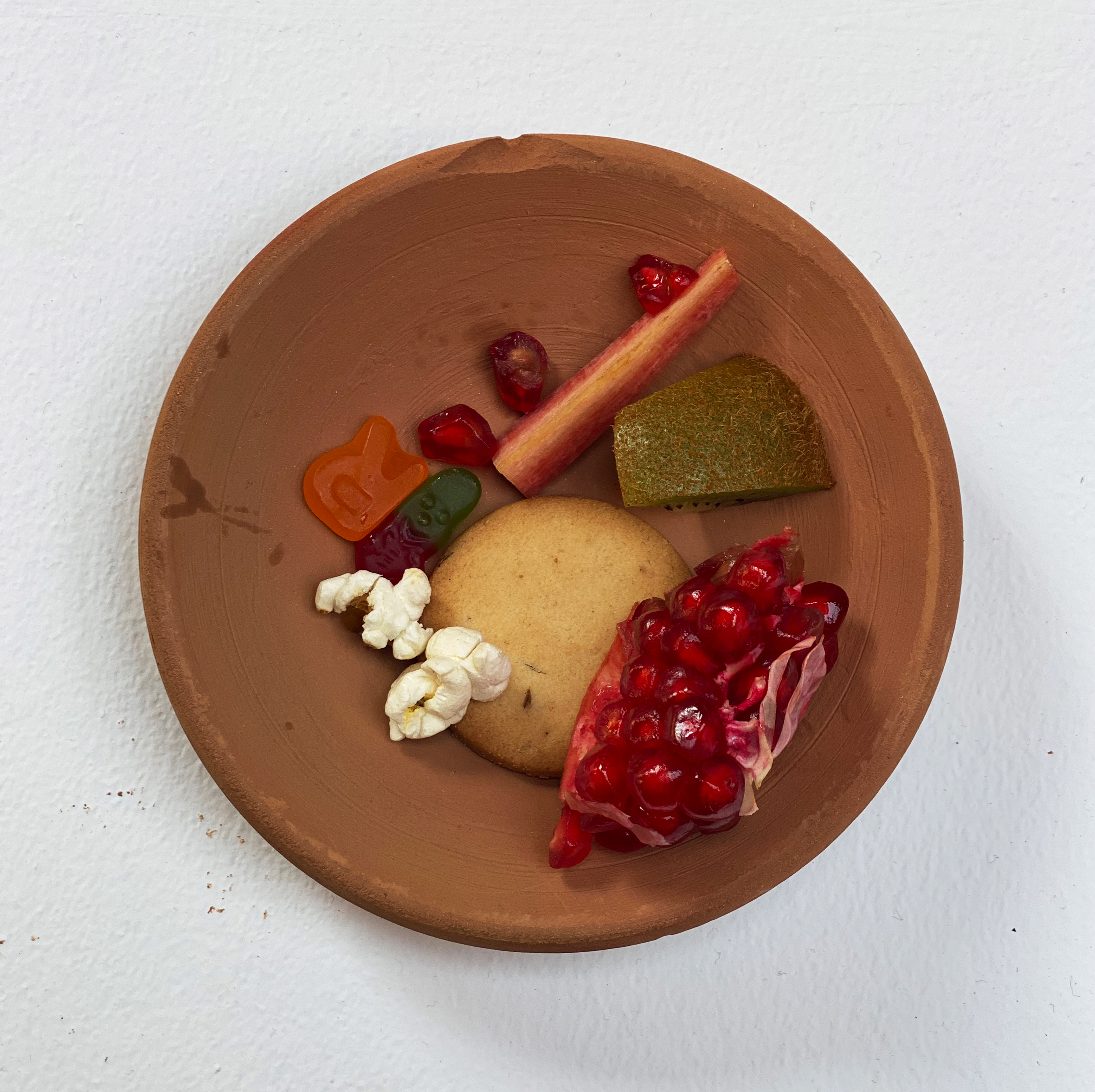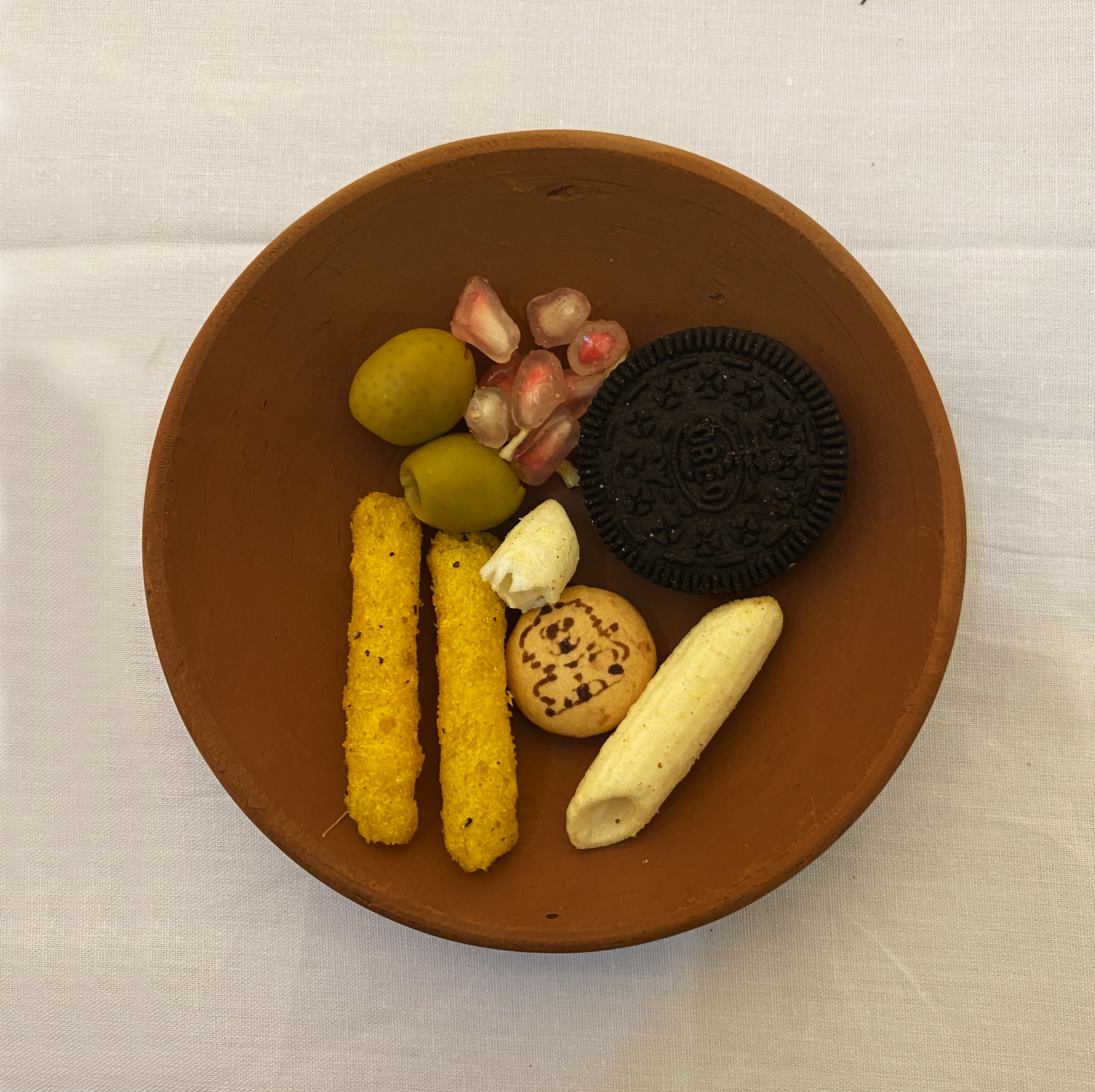 Food holds the power to evoke emotions, take us to the particular time that we have experienced, direct our mind towards certain people we have shared a particular dish with—a single bite ignites vivid memories, conjuring cherished moments and familiar faces. Remnants of a Loved One is an ongoing project in which the artists aims to collect visuals of plates curated by people from the selection of 60 food items ranging from the local snacks, to the fruits and vegetables that are frequently used in the region; the food items in the spread are chosen keeping the local context in mind. The participatory installation gives the participant a prompt to interact with the work. The instructions include picking up an empty plate and then picking out food items from the table that reminds them of a particular loved one. The artist looks at these curated plates as portraits of people’s loved one.