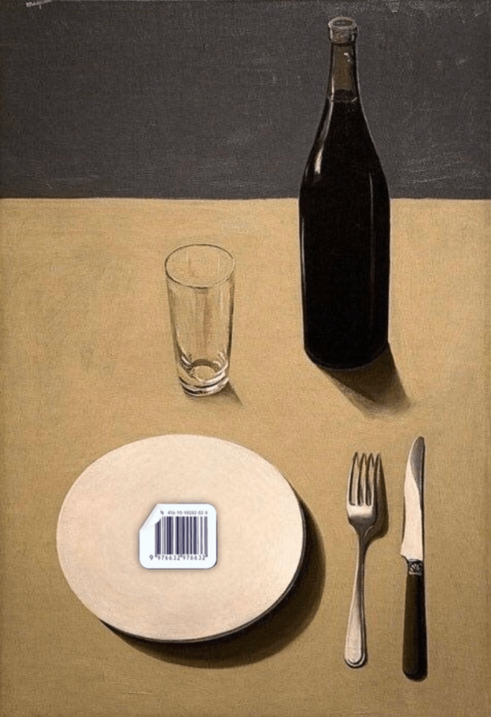This reimagining of Magritte’s The Portrait maintains its surreal essence while addressing contemporary issues of consumerism, food production, and digital consumption. Replacing the eye and meat with a barcode highlights the shift from food as nourishment to a commodified, industrial product, symbolizing artificiality and corporate control. The piece critiques how food is now shaped by data, branding, and technology, reflecting a world where consumption is tracked and marketed rather than naturally grown. It raises urgent questions about our loss of connection to food and the human experience in an era dominated by surveillance and consumer culture.