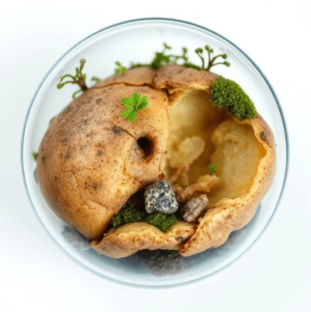 Observing food beyond sustenance, it becomes a vessel of history, memory, and transformation. While Beth Galton views food decay as loss, I reimagine it as rebirth. Decomposition is not an end, but a vital transition—organic matter returns to the earth, nurturing new life. Rotting food fosters ecosystems: seeds germinate, mold supports biodiversity, and compost enriches soil. Even fermentation, a form of controlled decay, transforms food into something new and valuable. These processes reveal decay’s regenerative power. Food decomposes through interaction with its environment—moisture, temperature, and microbes shape its fate. By viewing decay as fertility, we shift from loss to renewal, recognizing food’s impermanence as part of nature’s cyclical rhythm. Decay becomes a living, transformative archive.